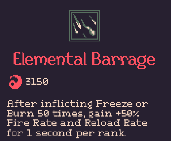 Eventually we will not have to reload at all due to the lightning skill Energize. This gives each lightning strike a 20% chance to refill 3 bullets. It is not important to grab this early game, except that we want it to unlock Electro Mastery, as the amount of enemies on screen is not enough to keep us from having to reload.
