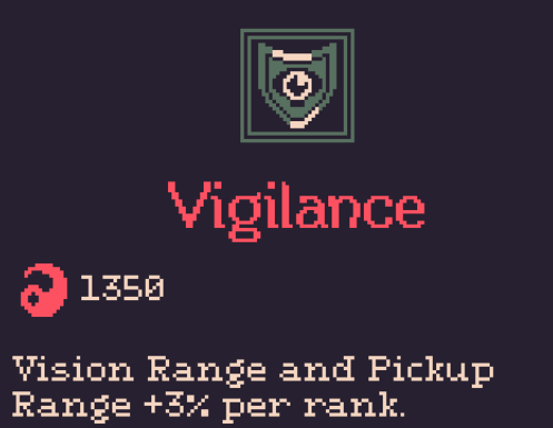 Vigilance for the larger pick up radius, since more pick up means faster levels.