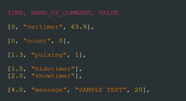 message makes a message appear on screen, in this example, SAMPLE TEXT will appear for 20 seconds.