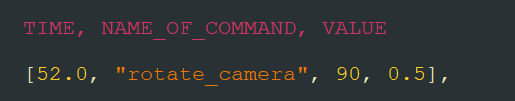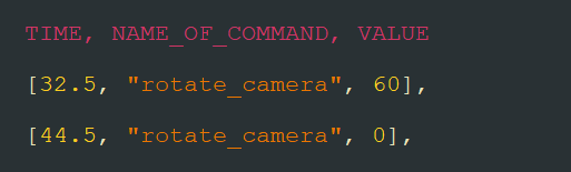 This is the second form. Here, the command will make the camera rotate the specified amount of degrees in the specified amount of time. After that, rotation will stop automatically.