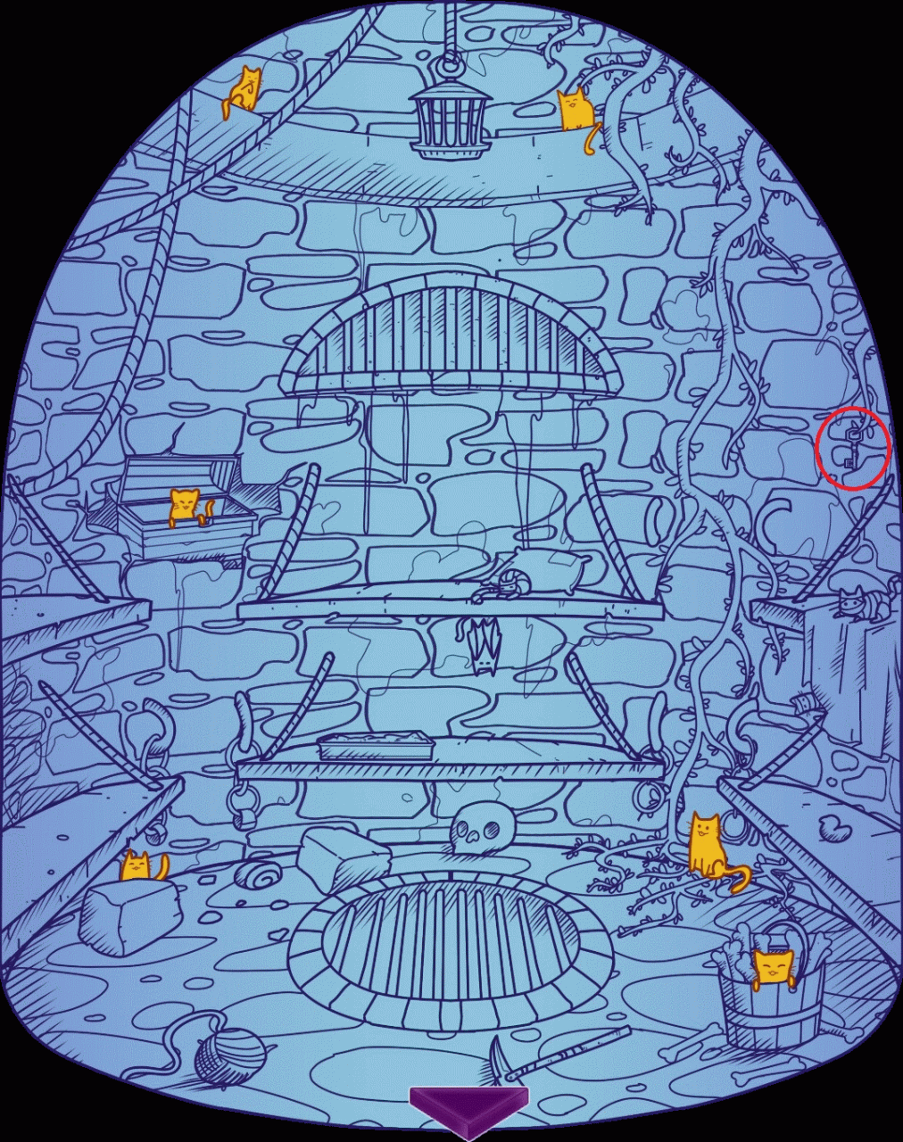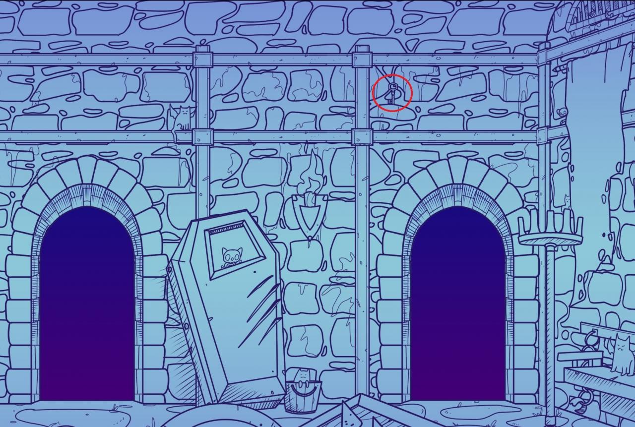 The cat will then take you to the sewers, where you will find Cathulhu. If you have the key to his chains which is in the library, you can free him and he will give you an item that will allow you to teleport anywhere in the castle. And you will get the “Teleport” achievement.