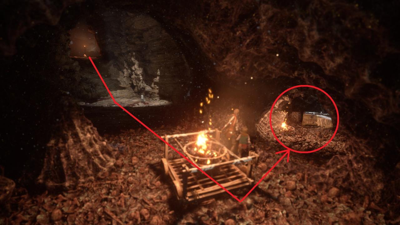 – Secret Chest #9 can be found and unlocked during sub-chapter “Rat tank”, objective “Explore the rest of the underground area”, after you reach the bridge section and Amicia finds herself surrounded by the rats at the lowest level of the room. After you fix two of the bridge segments, and you exit through the chains, you will see a brazier down on floor.