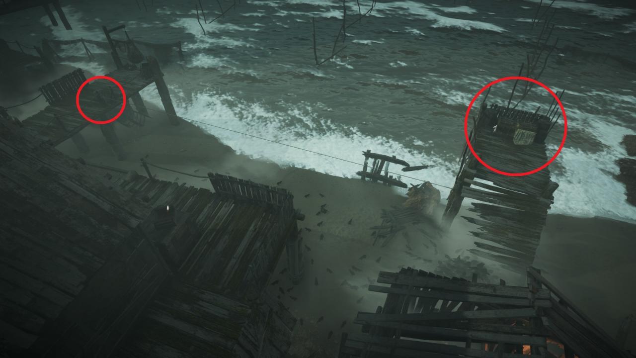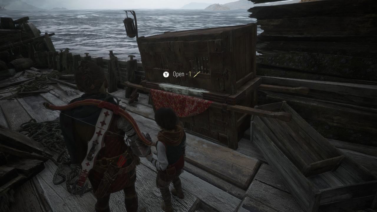 – Souvenir #6: A grain of sandCan be collected during objective “Reach the Order’s Boat”, after exiting the Tar Workshop. Progress until you reach an area with docks for small boats. To the left there is the door that leads to the next area, but DO NOT INTERACT with it. Turn to the right and shoot down a hinge with your slingshot, to open up a path to a small pier that has a little boat docked to the left. Walk until the end of the pier and there you will have an interact prompt.