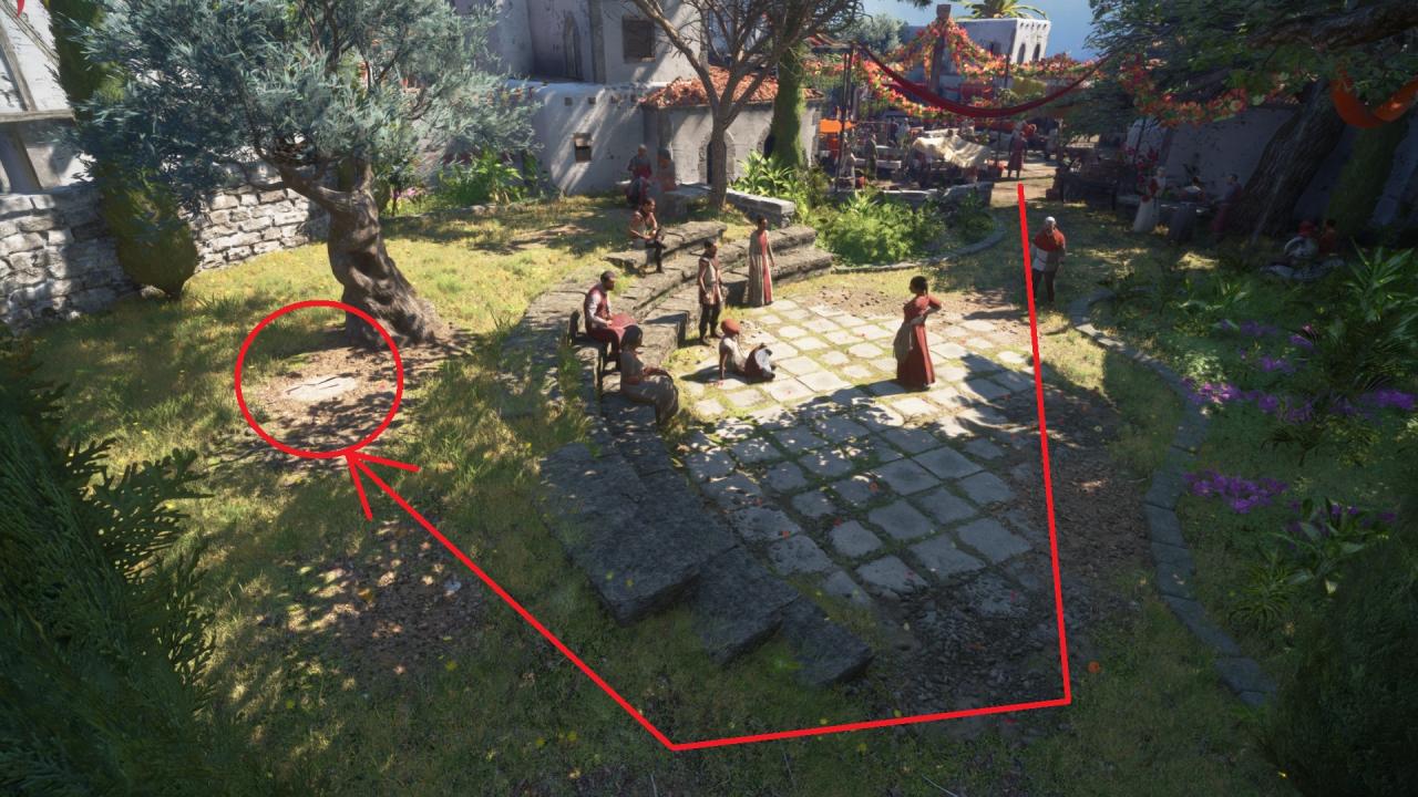 Can be collected during sub-chapter “Celebration of the brighter days”, objective “Look around for information about the island”. After exiting the market, follow the alley until you get to a pair of stairs to the left. Go down into the small plaza and head to the colourful stand with hanging flower crowns. Interact with the stand in order to begin the mini-game and pick up the 4 pots from the table.