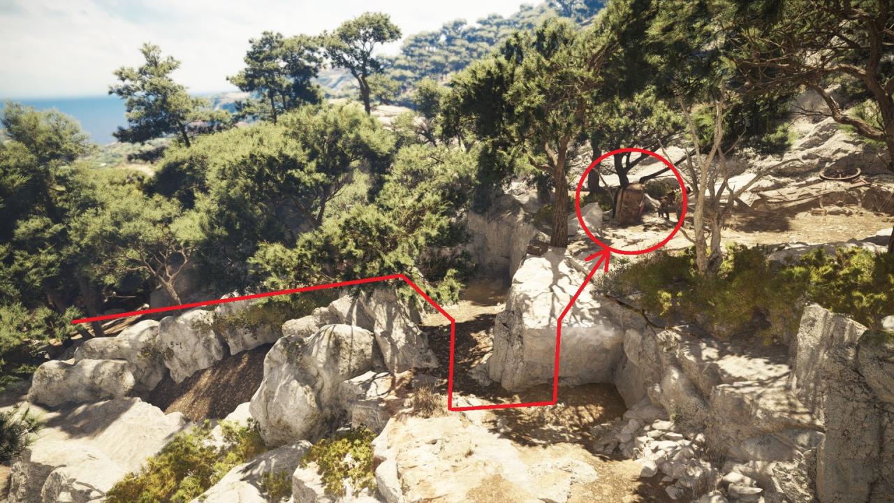 – Secret Chest #7 can be found and unlocked during sub-chapter “On the mountain”, objective “Find a way around the checkpoint”. Continue on the path past the ruined round building, until reaching a narrow path surround by rocks that continues to the left. On this corner there is a ledge. Climb up and in front of you you will see a secret chest.