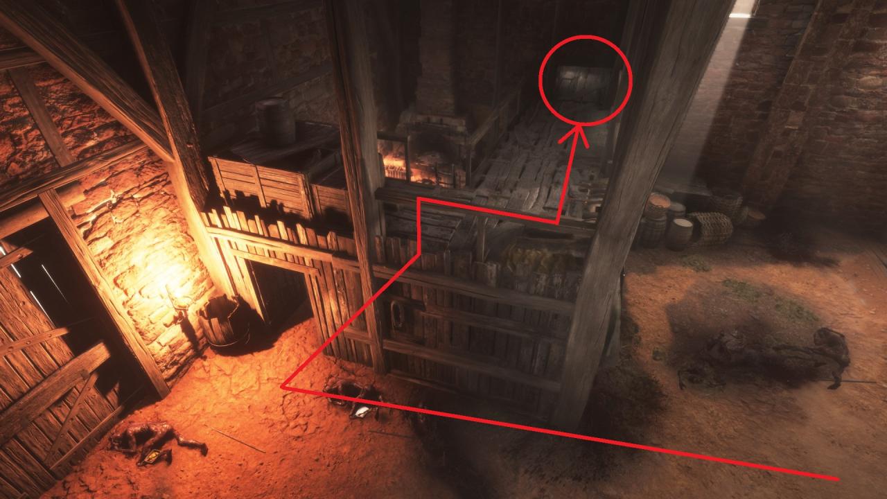 Head inside the tower and climb up to the second floor. You will see the secret chest in front of you.
