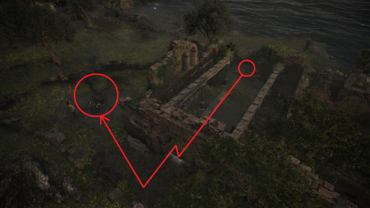 Can be collected during sub-chapter “Exploration”, objective “Follow the bird statues”, after leaving the castle and finding the first bird statue. From now on, you are free to explore the entire island. Continue forward on the path until passing the second bird and reaching a crossroad. From here continue forward (keep the house to your left and the castle to the right) until you come close to a river. Turn on right on the path and walk towards the old olive tree at the end of the path.