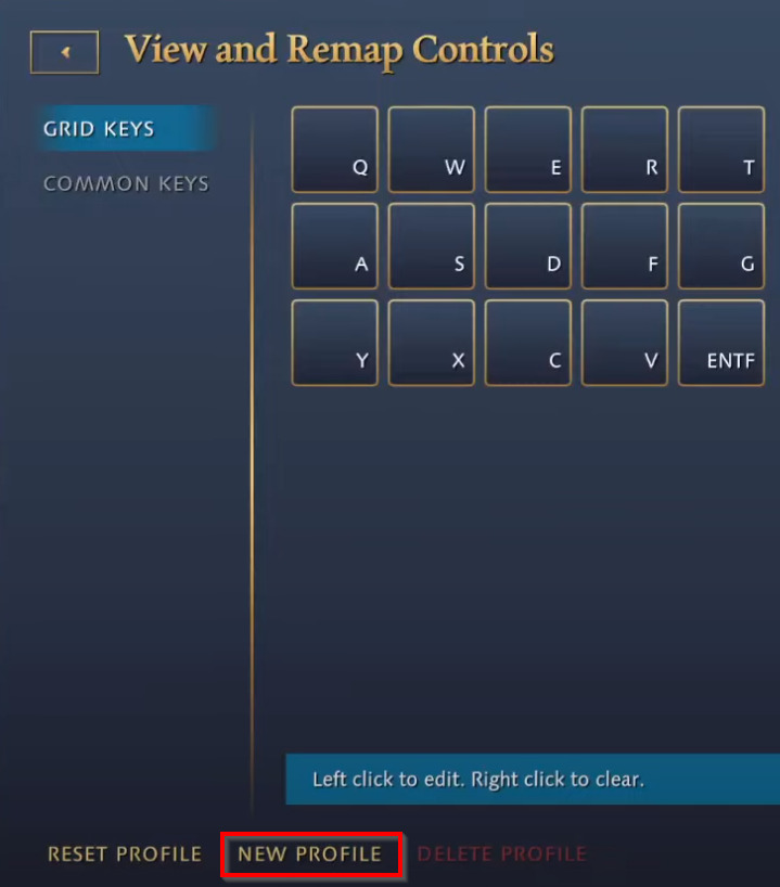 - Create a new control profile in AOE4. If anything goes wrong, you can delete this profile again.