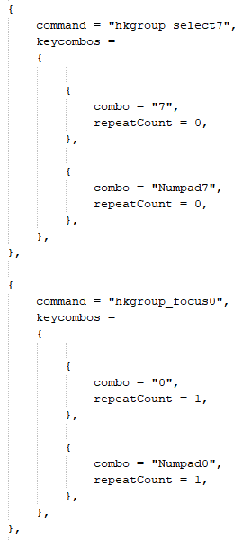 - RepeatCount seems to indicate the amount of times you have to press something, but you can’t imitate control group behaviour (1x select, 2x jump to) since control groups have two interactions: one for selection, one for focus. I therefore suggest to leave them like they are.