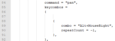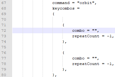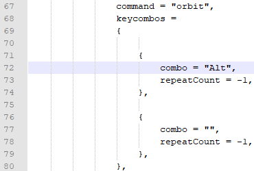 - You can free the ALT key which is currently locked for turning the camera. To leave empty, just delete the key phrase without deleting the quotation marks.