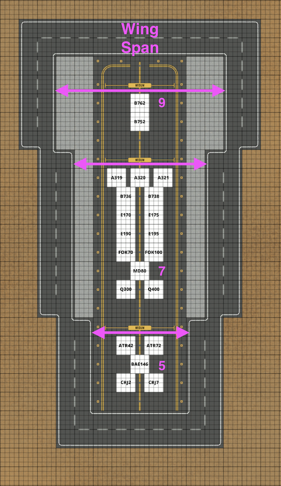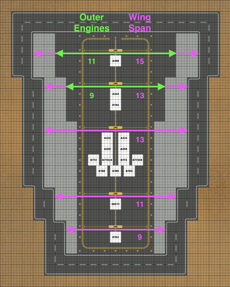 Hello all, now that most of all the aircraft are out, I made a little guide (visual) for those of you who want to have wing or engine clearance for your airport designs!