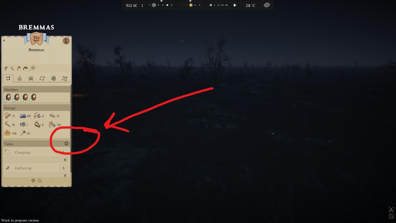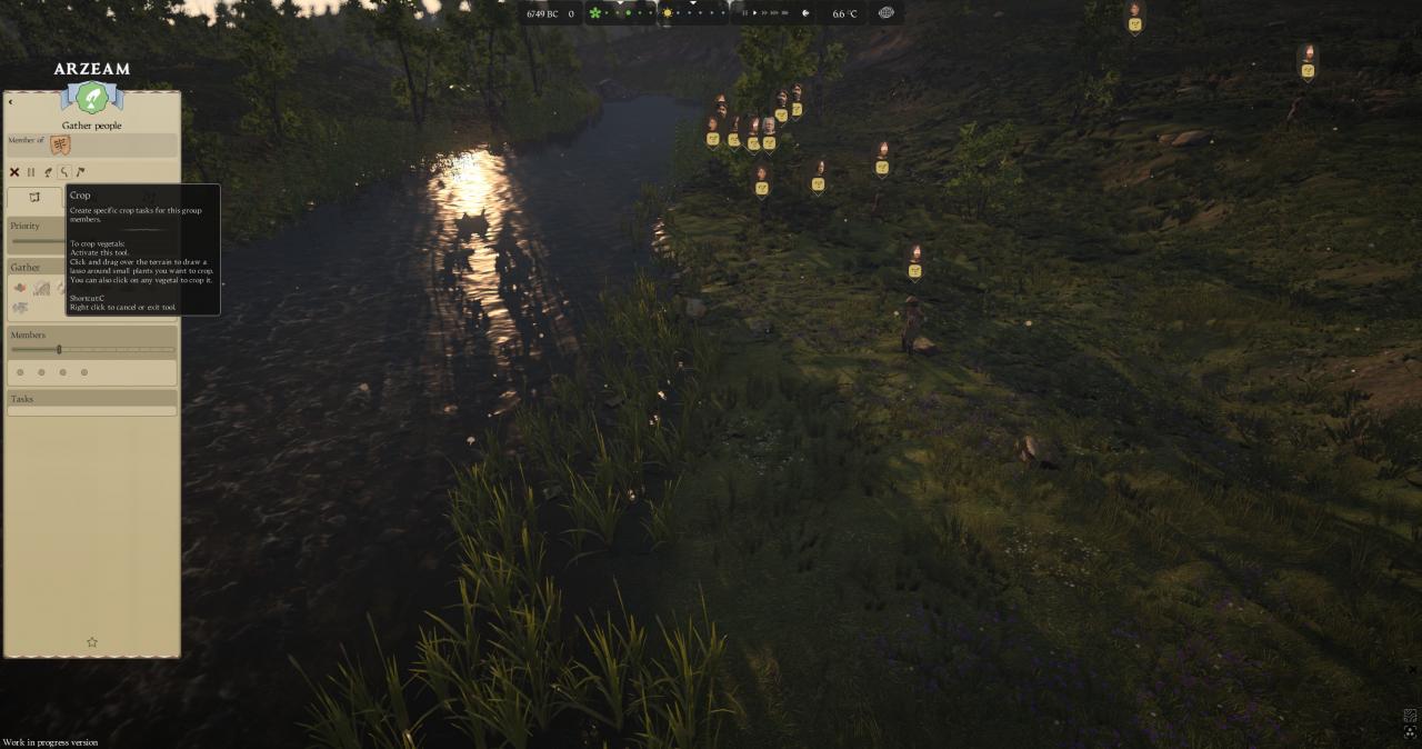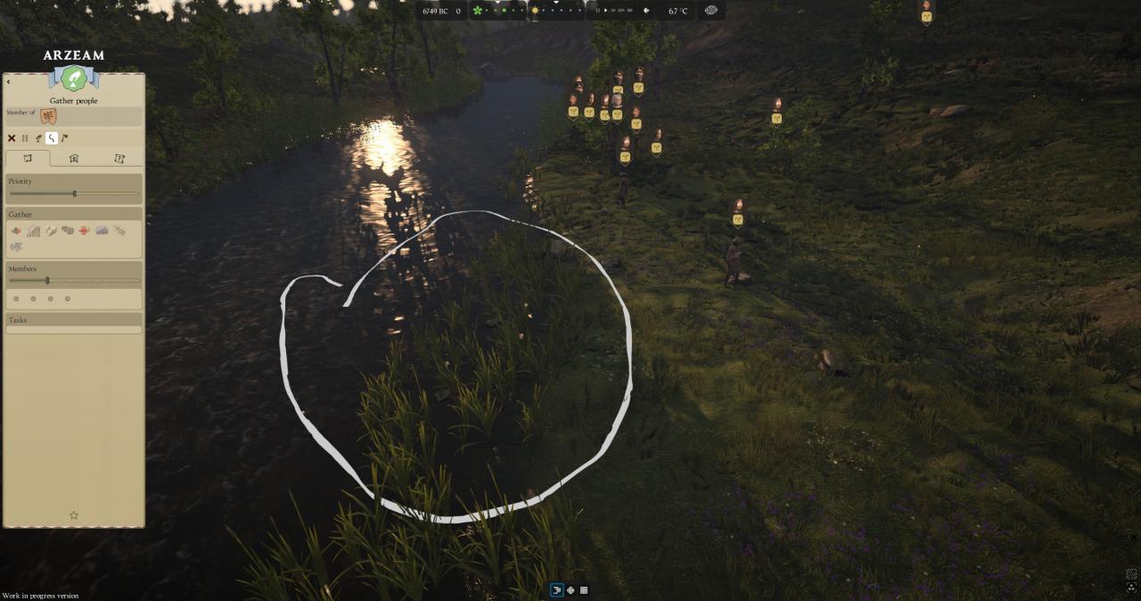 Make sure to slide the members bar along to assign how many people you want to gather the reedmase. Click on the sickle.