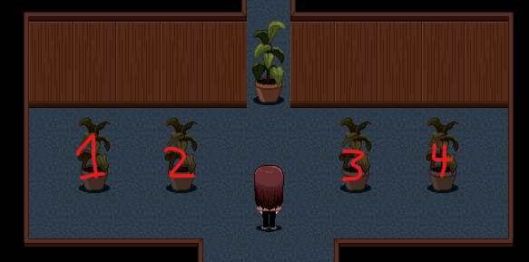 it is to be noted that you can solve this puzzle by interacting with the four potted plants ONCE at ANY COMBINATION(by going 2,3,1,4 or 4,3,1,2 or at any permutation/unqiue set)