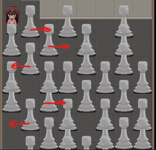 This puzzle requires you to enter specific doors to progress, you will know that you are progressing when more doors appear.