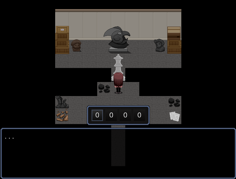 Interact with the brown clay statue, walk next to the last black clay statue and it should break it, walk back to first black clay statue and you should see a door (that magically appeared). Interact with the door and walk past the first black statue, (you should see the brown clay statue open the door), walk back and interact with the door and walk away.