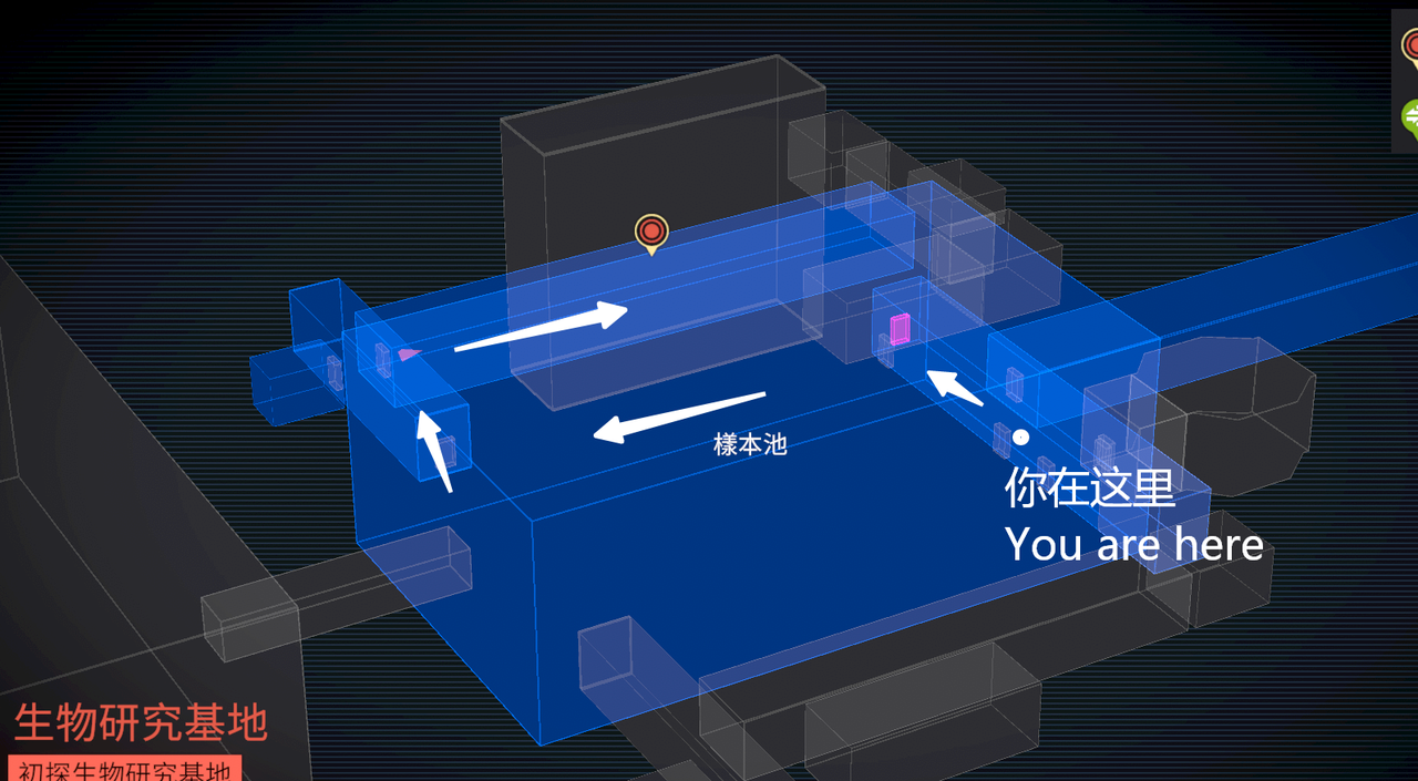 Go back to the pool. At this point you can go into the door in the middle. Walk to the other side and fight some enemies. After you can get a prop for another subtask.