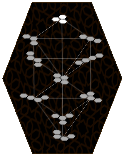 The hexagrams link by single bit/line change, giving each hexgaram cell 6 possible connections to other hexagram cells.