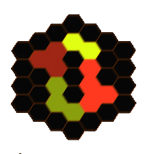 The simplest game in Archaid, primarily for learning the hexagonal control mechanics shared by all the games: It’s basically a hexagonal Tetris with gravity pulling the pieces from all six direction towards the center of the plane.