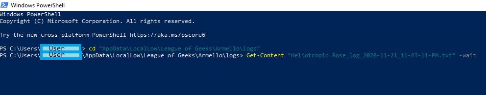 Replace the User part of the file path with your Windows username, pretty simple. Every time Armello starts, it creates a new log file for the play session. Subsequently, the log file closes when you quit Armello or end the process. Make sure you start up Armello so you have the log file there ready for the next step in this guide.