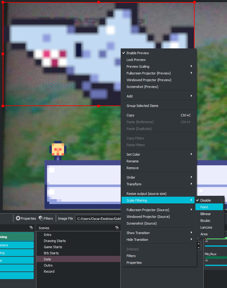This Tutorial explains how to to use pixelart in OBS without having to resize it by 1000% of its orginal size! its pretty simple!