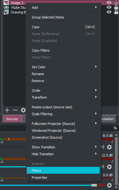 You can Enter the Filter tab by right clicking an images in the sources or the display window!