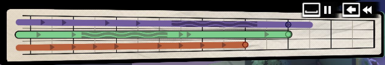 Use the TIMELINE in the upper left hand corner of the screen to view your remaining turns and windows of object interaction (for example how long a door will be open). Look at your musical resource meters when previewing a move with the stick to see how the orange bars expand and contract. If the timeline is filled before you reach the goal, or any of the orange bars reaches zero, you cannot continue.