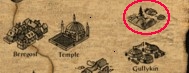 In Beregost, sell that Ring of Wizardry and outfit yourself with a magic weapon and/or armor from the Smithy (depending on your class of course). Rest if you need to. Now it is time to get some easy levels. Exit right from Beregost to the Temple. Proceed to exit right on the Temple map as well (be careful to stay at the top to avoid enemies). When the worldmap comes up, head to the circled area: