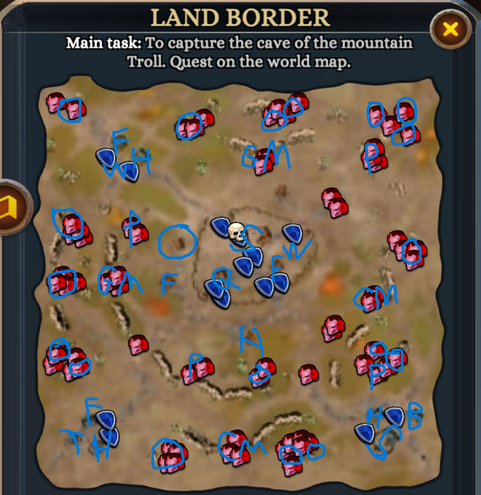 B is the bazaar which can give alot of food but usually spawns a wave.