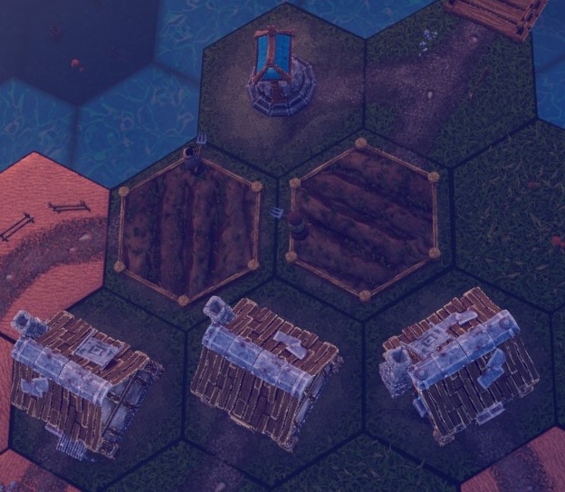 Field with 1 adjacent HutField with 2 adjacent HutsAdjacencyBonusAdjacencyBonus1 Accommodation+10% Prod Speed2 Accommodations+10% Prod Speed1 Field+2 Crop Storage2 Fields+2 Crop Storage1 Well+10% Prod Speed1 Well+10% Prod SpeedHut with 1 adjacent FieldHut with 2 adjacent FieldsAdjacencyBonusAdjacencyBonus2 Accommodation+2 Peeps2 Accommodation+2 Peeps1 Field+1 Food Storage2 Fields+2 Food Storage1 Field+1 Drink Storage2 Fields+2 Drink Storage