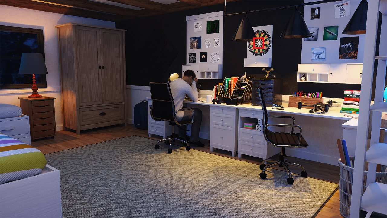 In Nick´s room, its on his drawers.