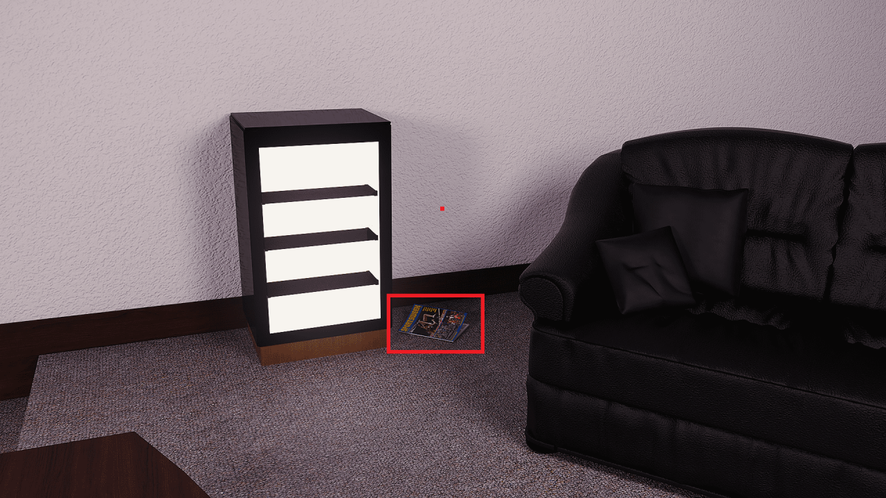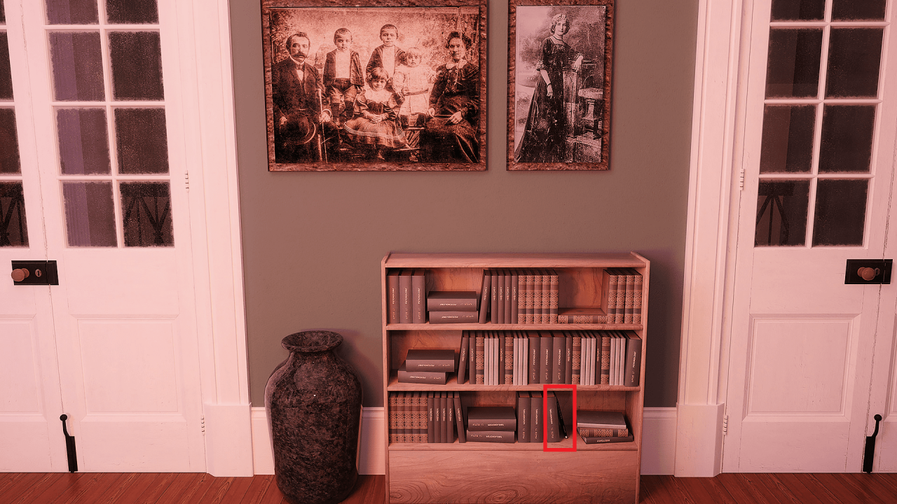 Go to the upper main room, go to the right and its on the right shelve next to the record player.