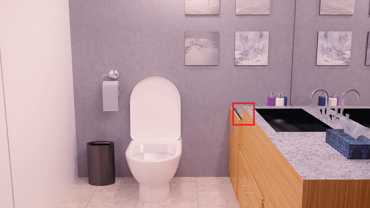 In the 1F bathroom, its on the sink.