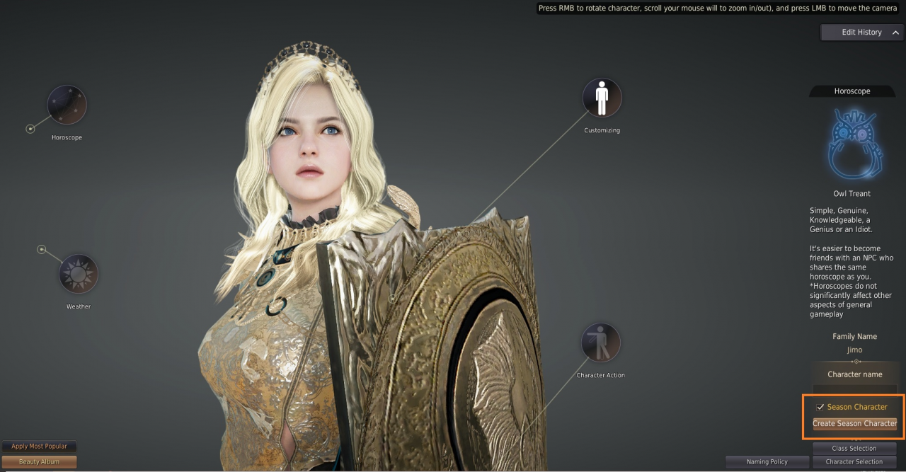 As with previous season servers, go to the Create Character window, choose your character, and select Season Character to create a season character.