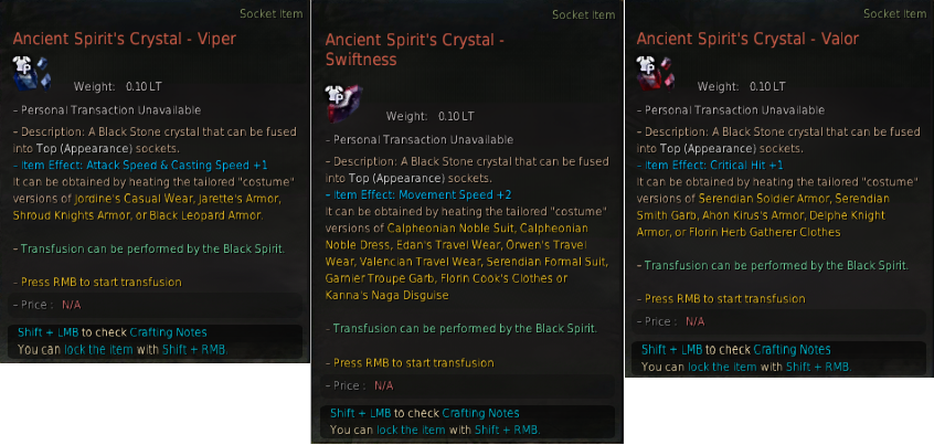Not only will these boxes contain a costume suitable for the class you open it with, but you can also heat the costumes to extract Ancient Spirit’s Crystal – Viper, Ancient Spirit’s Crystal – Swiftness, or Ancient Spirit’s Crystal – Valor!