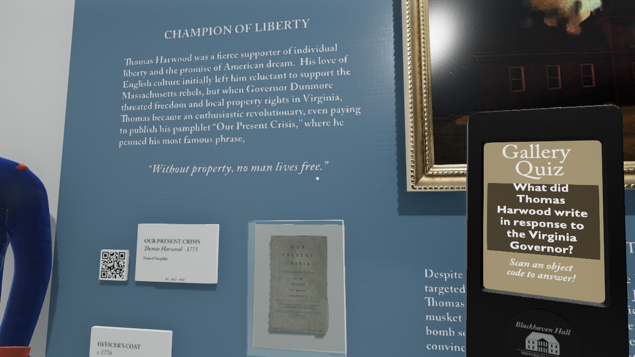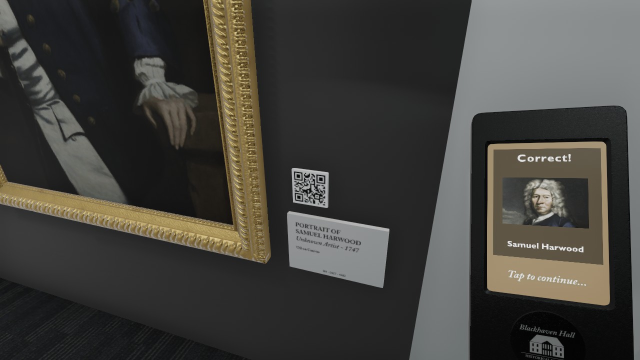 Scan the PORTRAIT OF SAMUEL HARWOOD near the entrance to the exhibit.