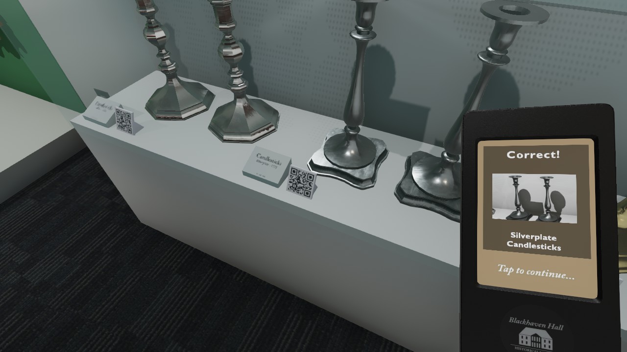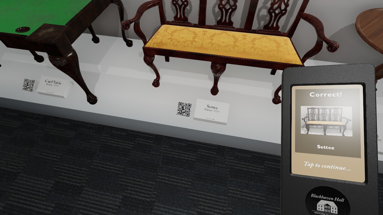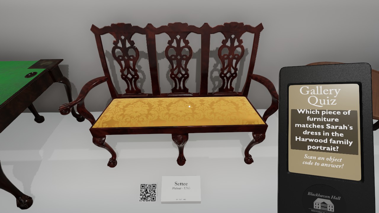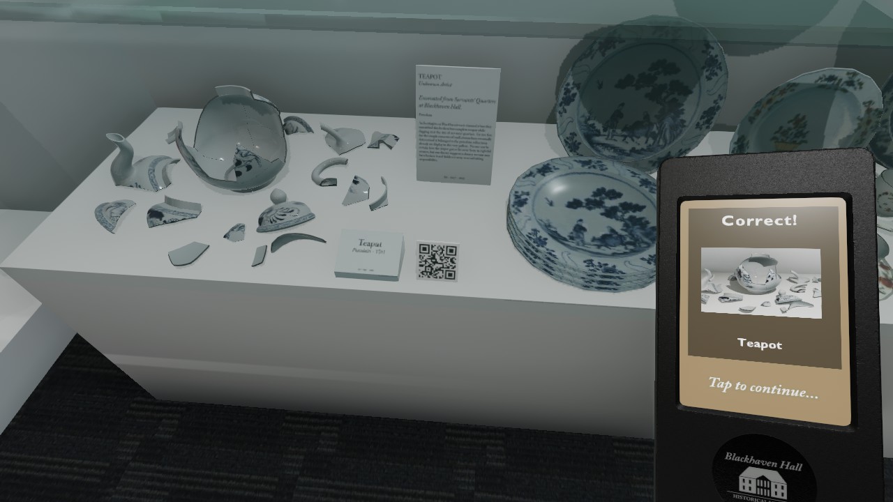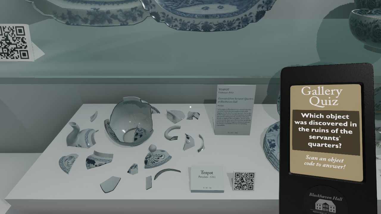 Scan the BROKEN TEAPOT in the display case just past the previously scanned yellow settee.