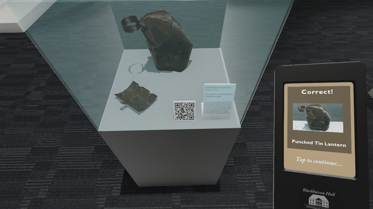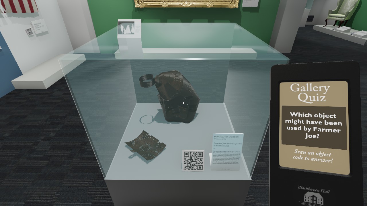 Scan the PUNCHED TIN LANTERN in the display case in the middle of the last large room.