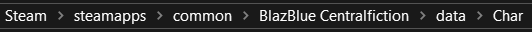 Navigate to your Centralfiction game folder and go to BlazBlue Centralfiction/data/Char/ (as shown in the image).