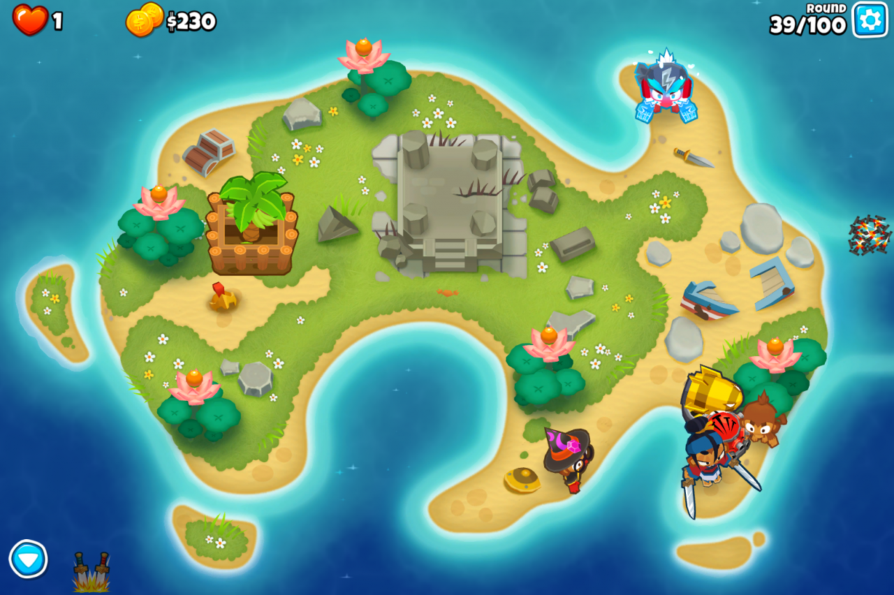 - Start building your Ice Monkey to 310 before the first Golden Bloon shows up, important to get the middle path upgrade first to stop the Golden Bloon at the spot.
