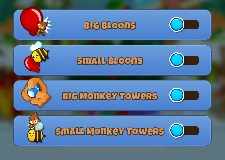 Keep in mind these are all PURELY COSMETIC, meaning that bloons will have the same hitbox with or without the extras and towers will also have the same placing hitbox no matter how big or small they seem.