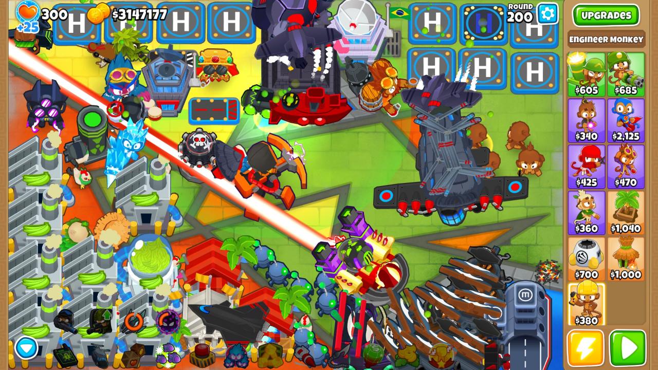 Bellow is an image of what I had for most of the rounds leading up to 200, i just set them while I focused on moving monkeys.