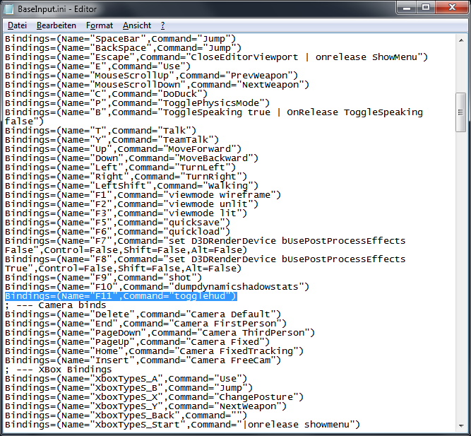 Quick guide of editing a .ini-file to add a toogle HUD function to the game