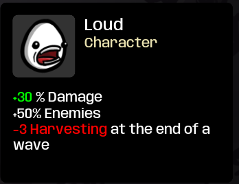 ^ The above information was taken from the Unoffical Brotato Wiki[brotato.wiki.spellsandguns.com], I will update this once I beat this final character