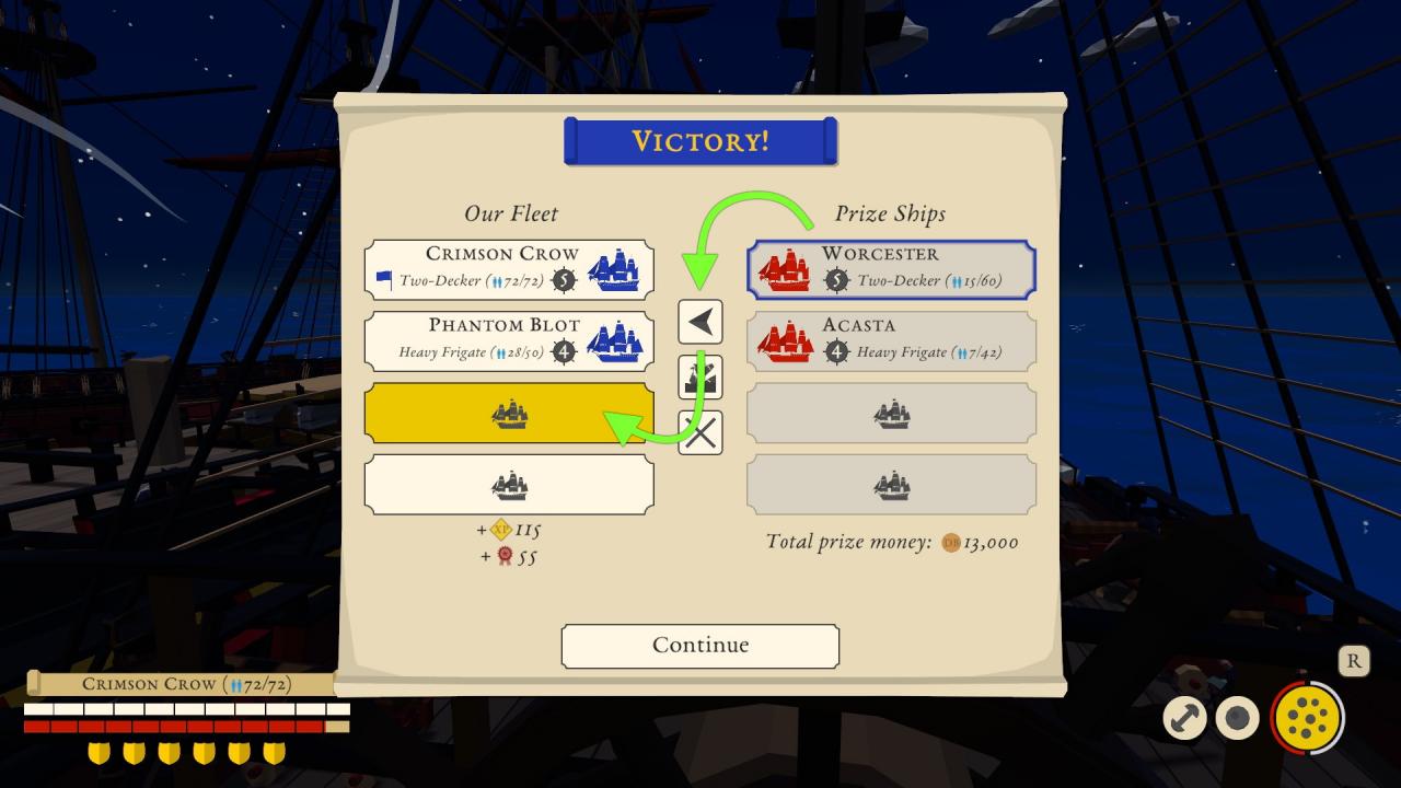 Click on the ship on the victory screen, then press the arrow button in the middle, then the empty ship slot in your fleet. Congratulations you’ve taken a ship for your fleet!