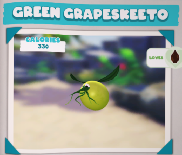 Use the Sause slinger with chocolate, shoot an razzby and when the green grapeskeeto is fat, use the Bug net