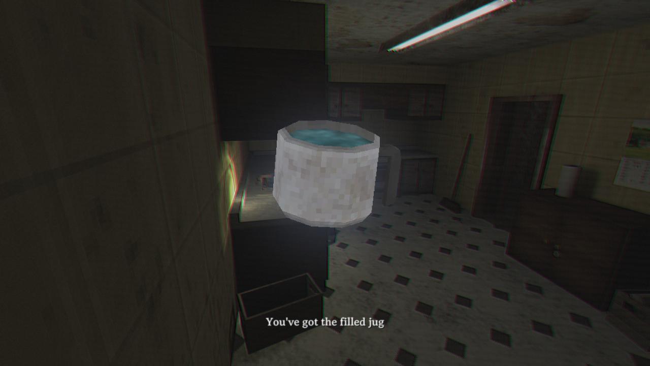 Head to the Kitchen and open it’s cabinet, there’ll be a jug inside.