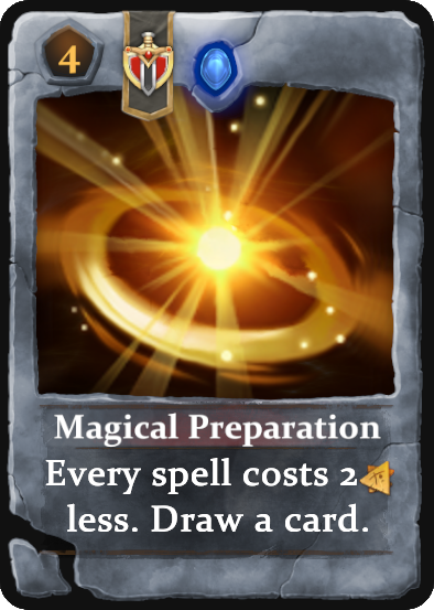 x1 Rare Magical Preparation – Every spell costs 2 runes less. Draw a card.