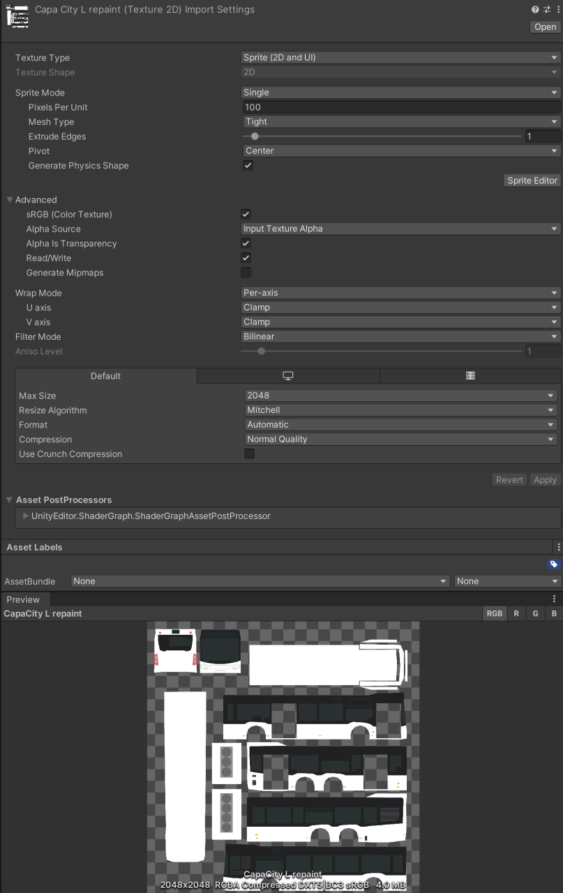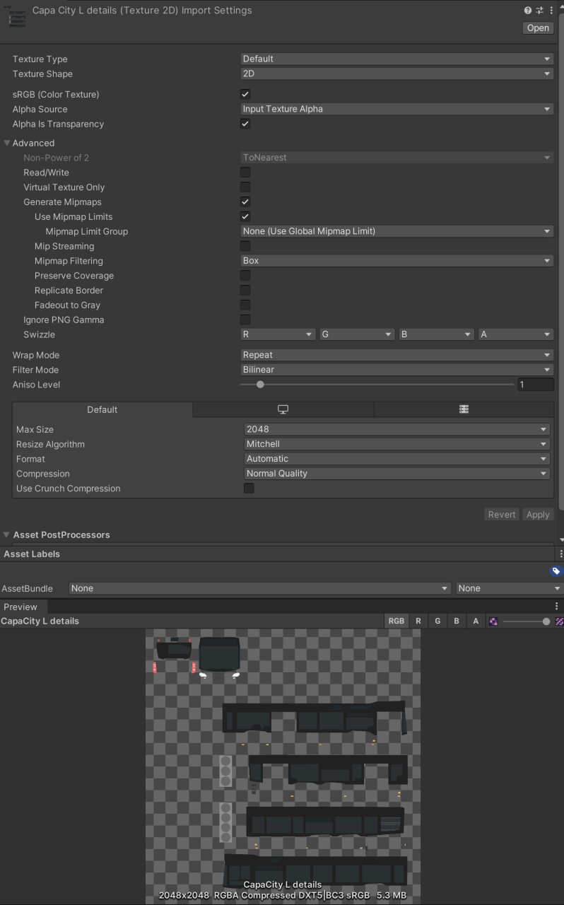 - Repaint template: Reference to the repaint texture (in this example “Assets/Texture/CapaCityL/CapaCity L repaint”).