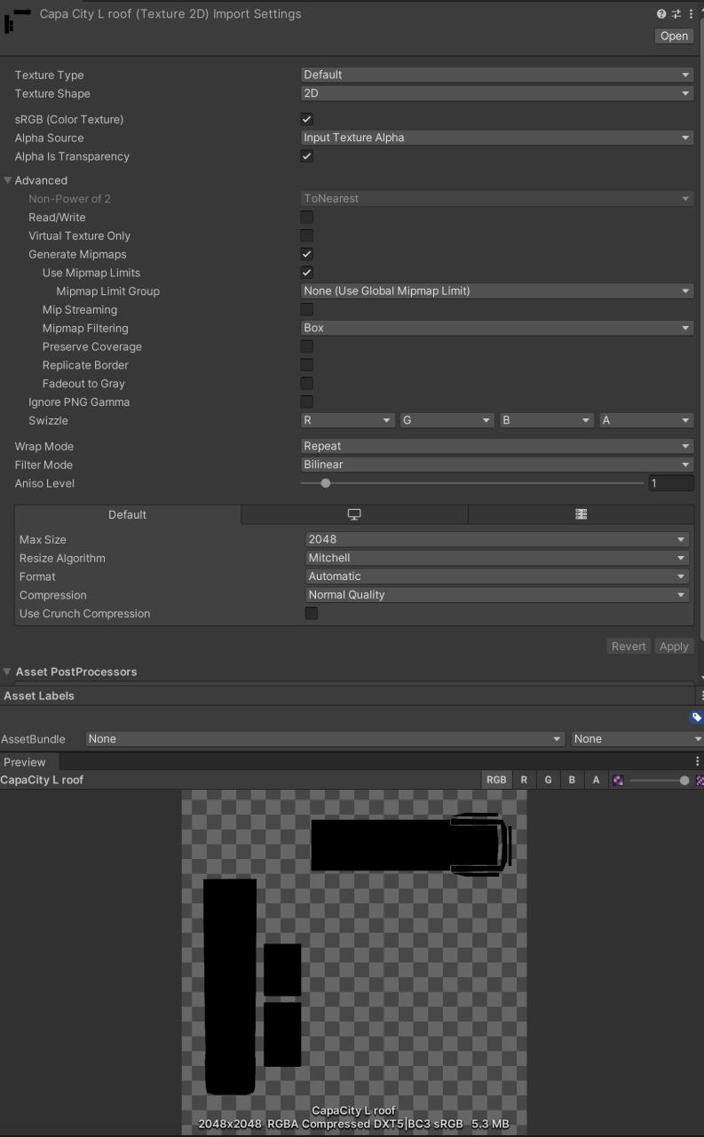 - “Roof Alpha Texture” => “CapaCity L roof”
