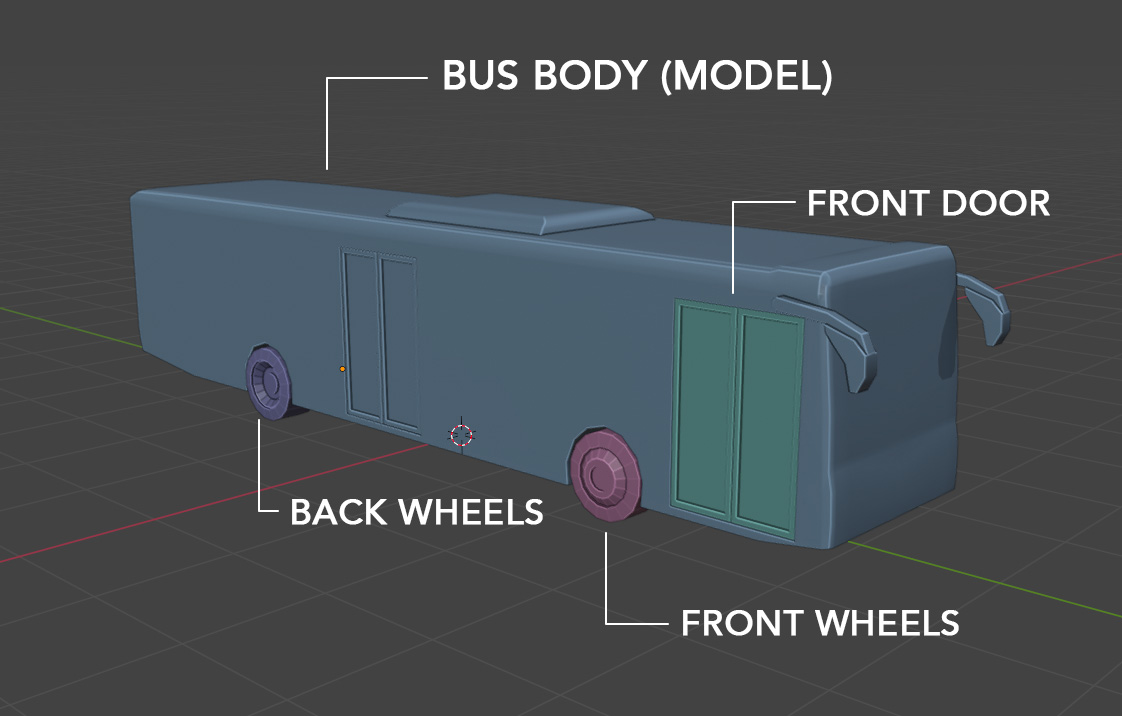 - Set the Armature as parent for all objects of the bus model that should move with the joint (e.g. wheels).
